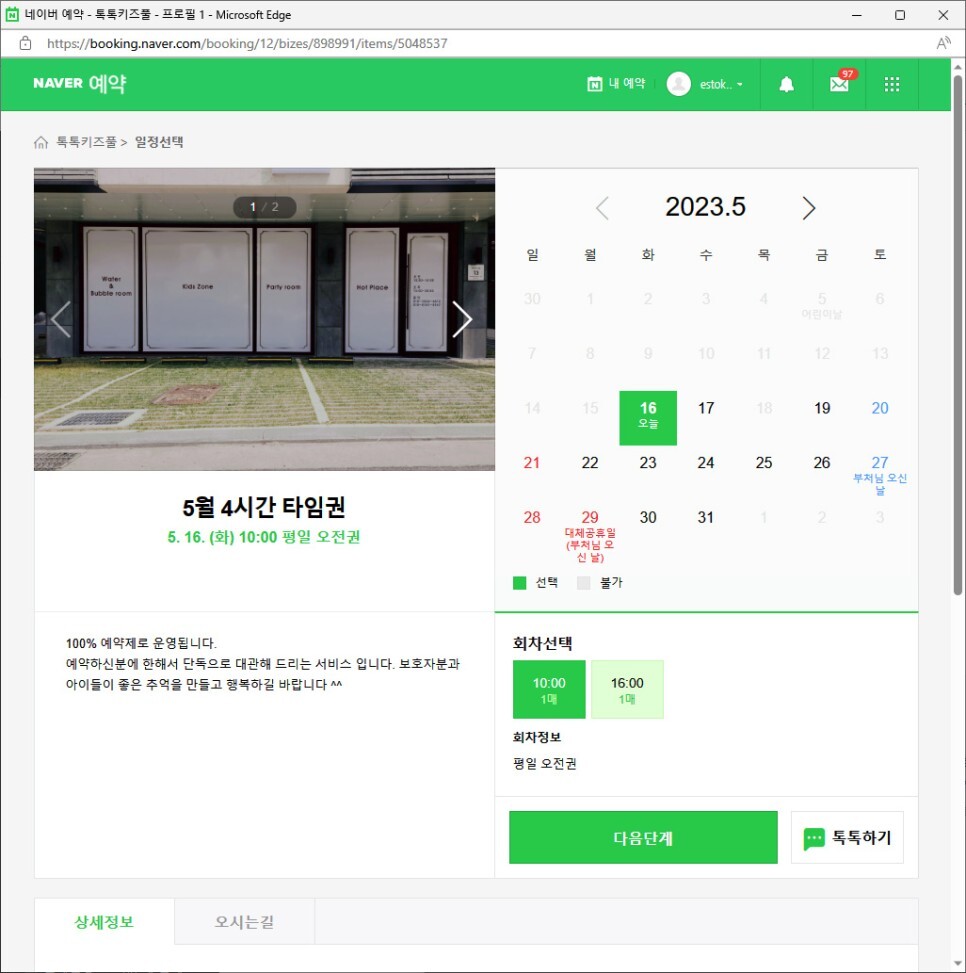 충남 보령시 소재 프리미엄 키즈풀 무인 파티룸의 네이버 예약 설정 대행작업이 완료되었습니다.