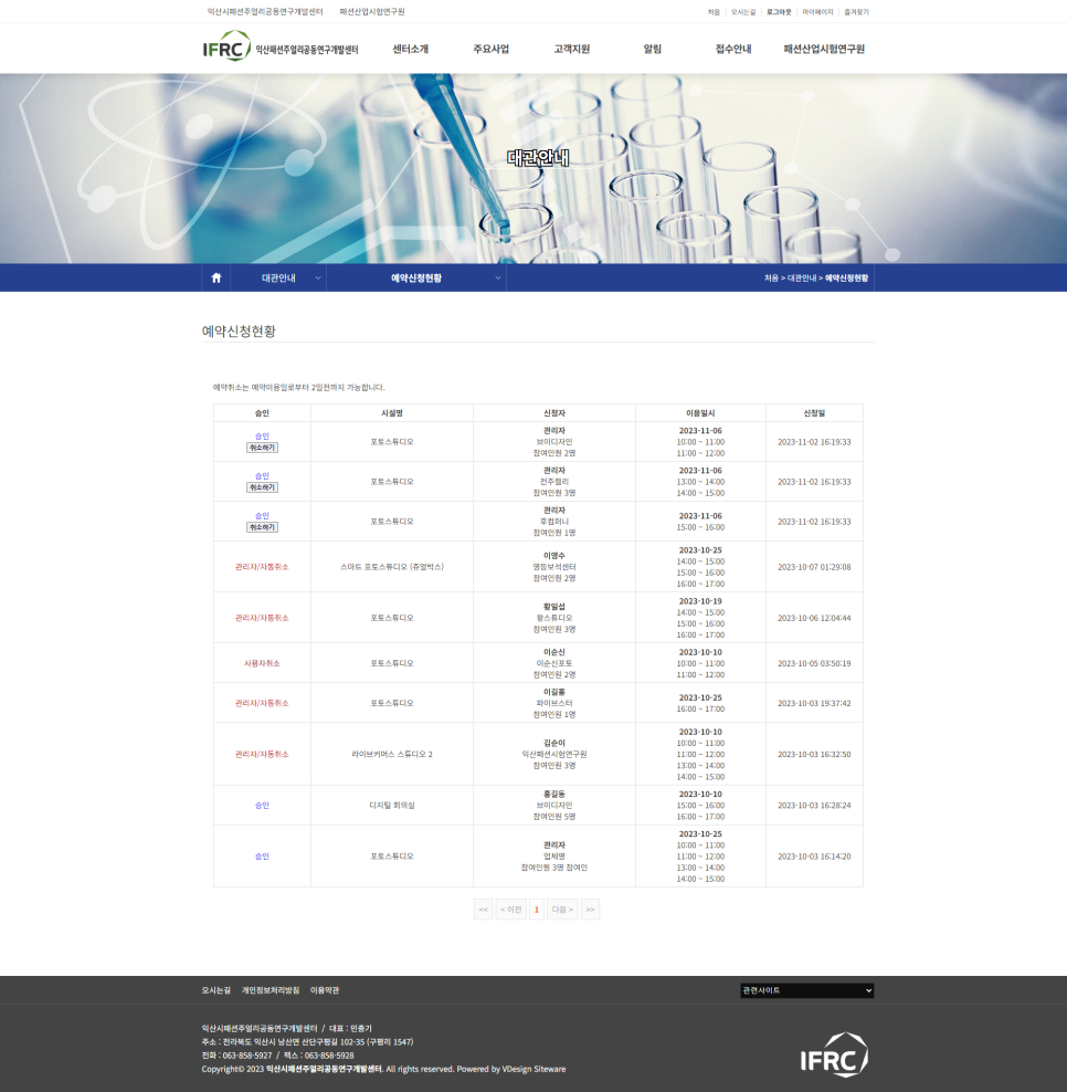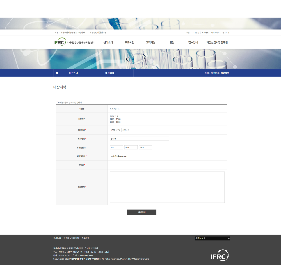 예약신청 완료 후 담당자의 승인을 거쳐야 예약이 확정됩니다. 예약내역은 예약현황에서 확인가능합니다.