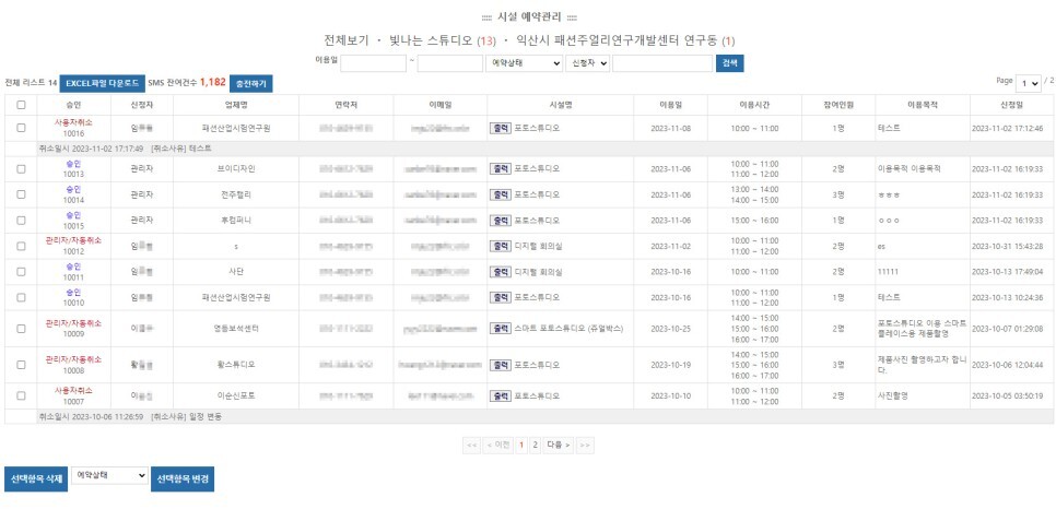 - 예약신청서 출력, 예약신청자 EXCEL파일 다운로드
