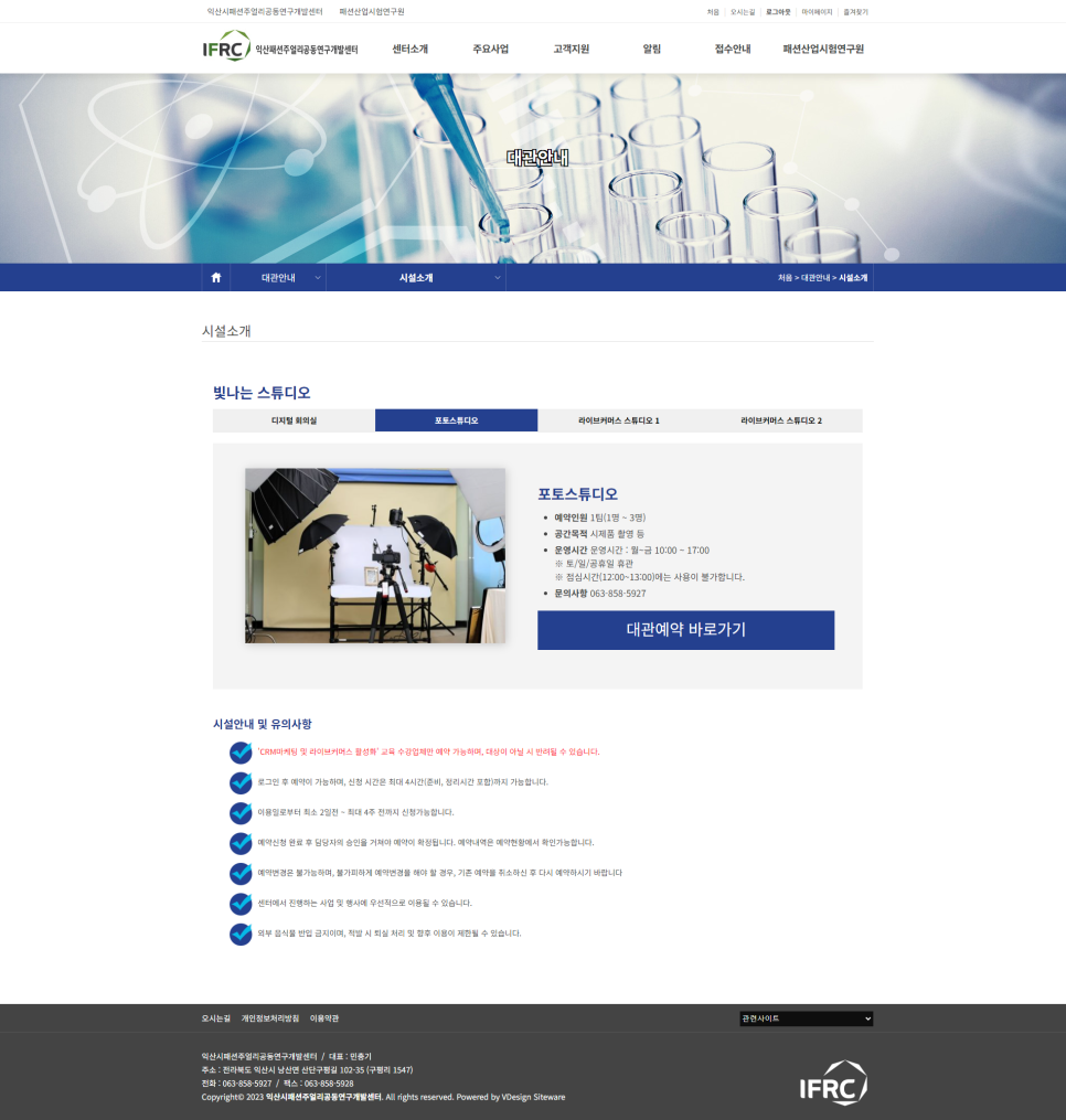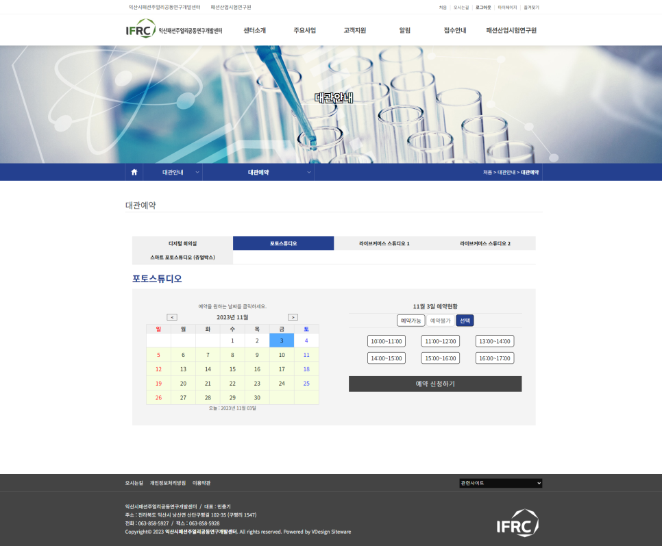 기관 홈페이지 內 대여시설/공간을 소개하고 홈페이지를 통해 온라인 실시간 예약 및 고객응대가 가능한 시스템을 마련하였습니다.